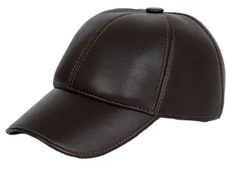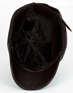 K248A Brązowa Skórzana czapka bejsbolówka z osłoną uszu