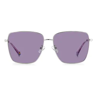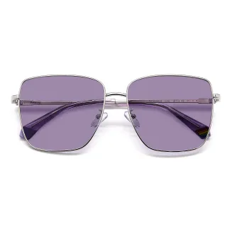 Silver-violet temples, metal and polycarbonate.
