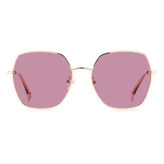 Temples gold-pink, metal and polycarbonate.