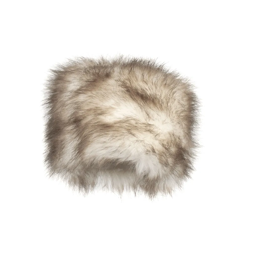 W121B Beige-White Melange Warm Winter Hat Faux Fur With Fleece