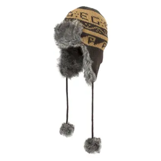 W207D Brown Warm Knitted Eared Winter Hat With Fur