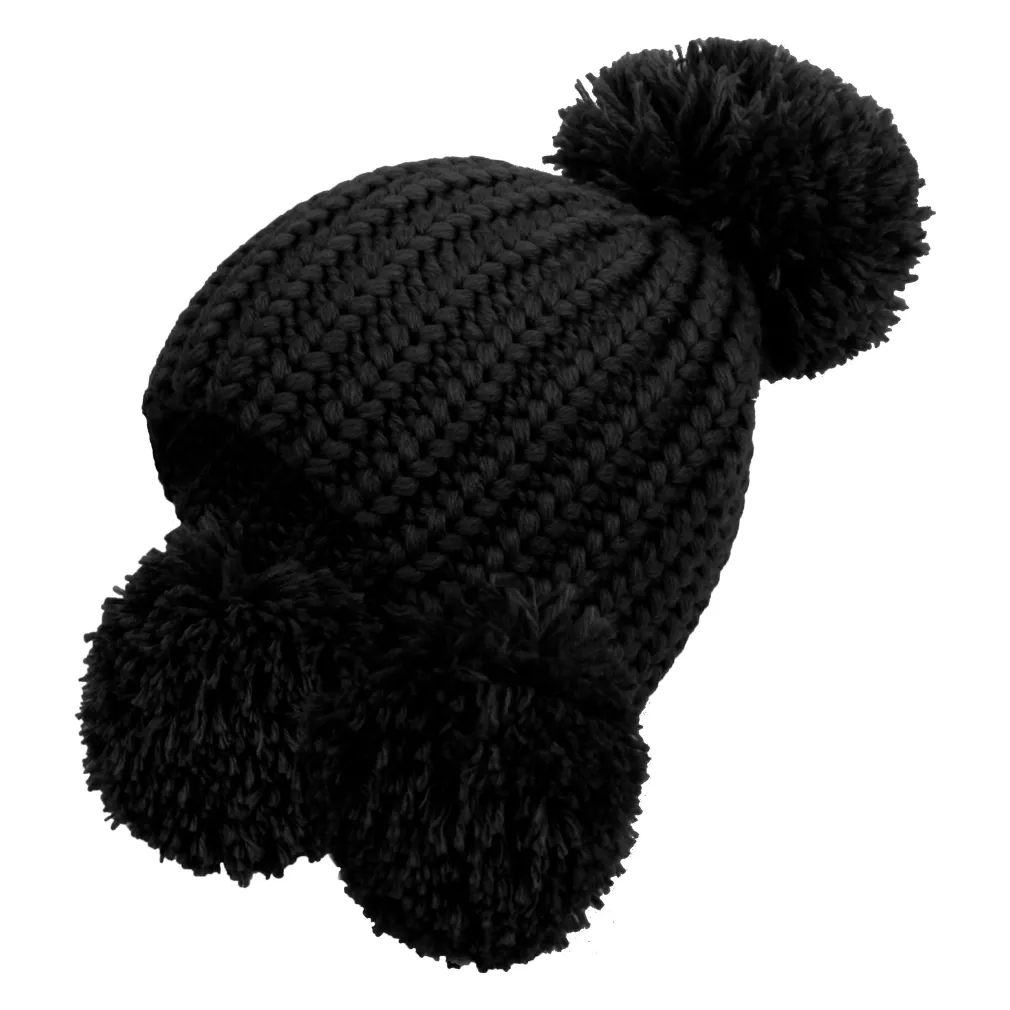 • W229J Black Warm Knitted Winter Hat With Decorative Pom-Poms