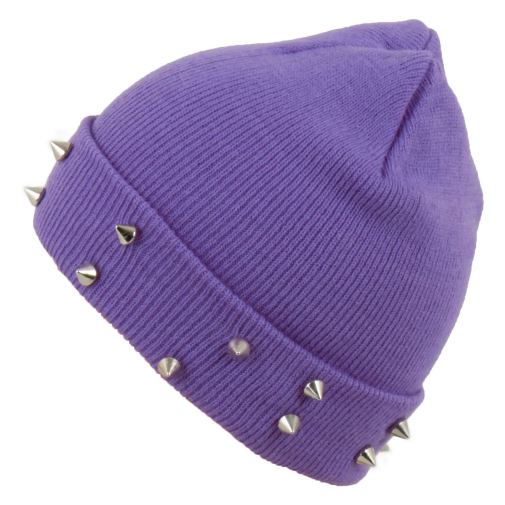 • W240J Purple Hat Knitted Hat With Studs Beanie