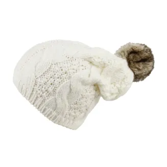 W261Bc White With Pompon Knitted Acrylic Winter Hat With Pompon