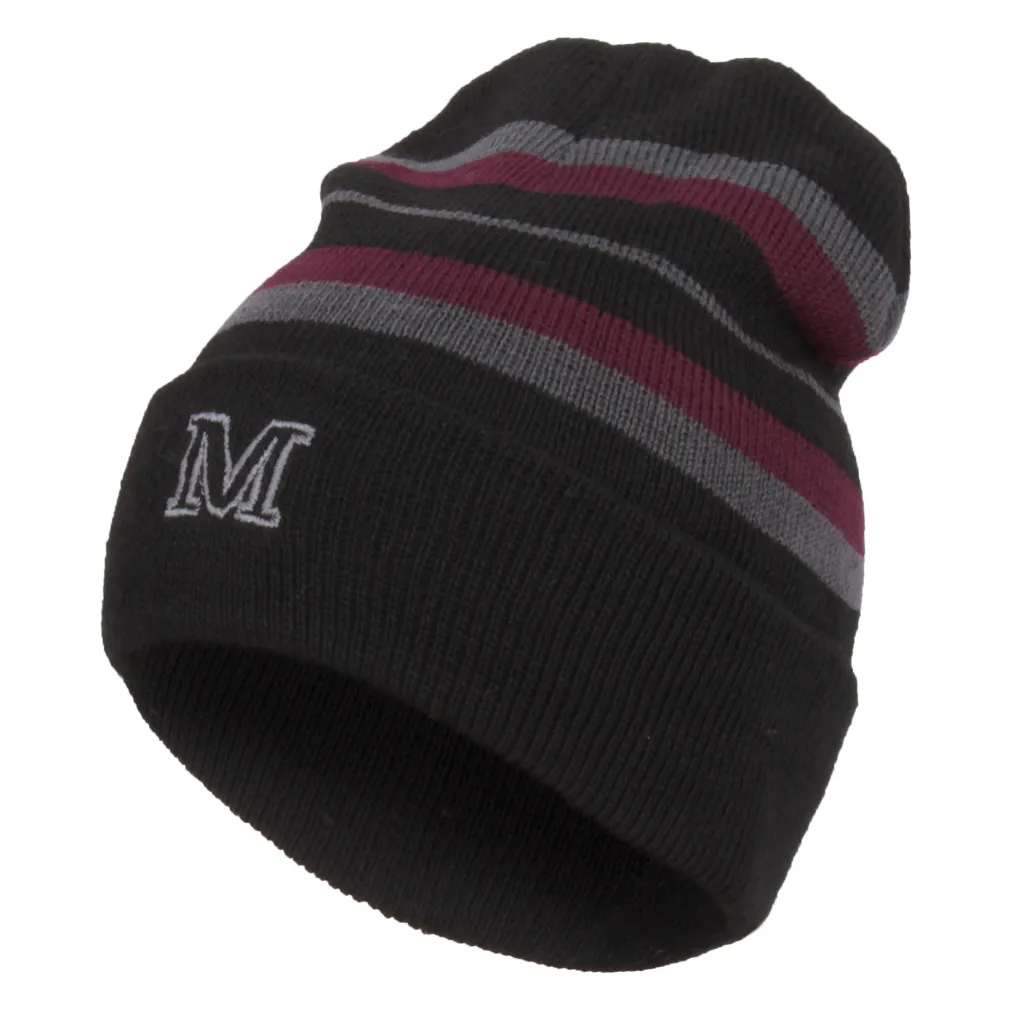 W305B Winter Hat With Knitted Stripes In Black And Red For A Haker Fisherman Beanie