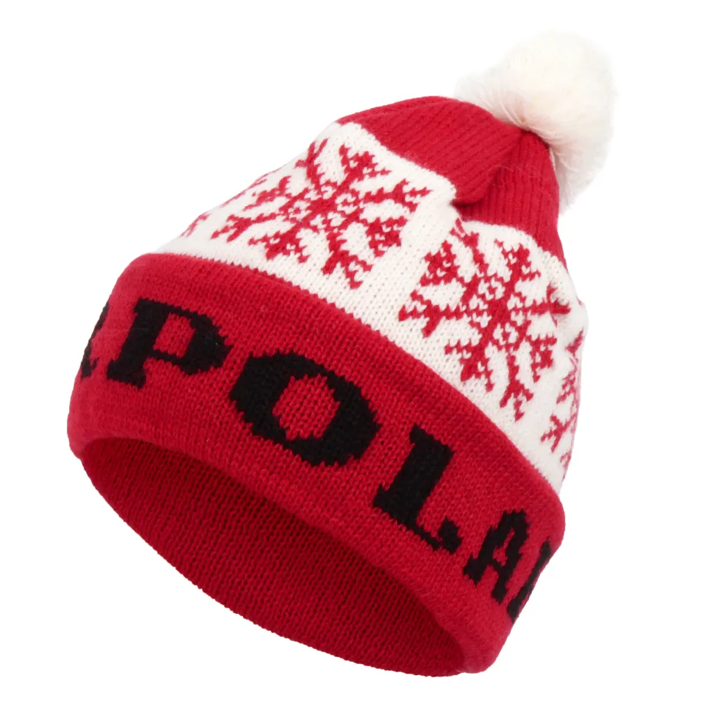 W329C Red Polar Fashion Knitted Winter Hat Beanie Long Snowflake With Pompon