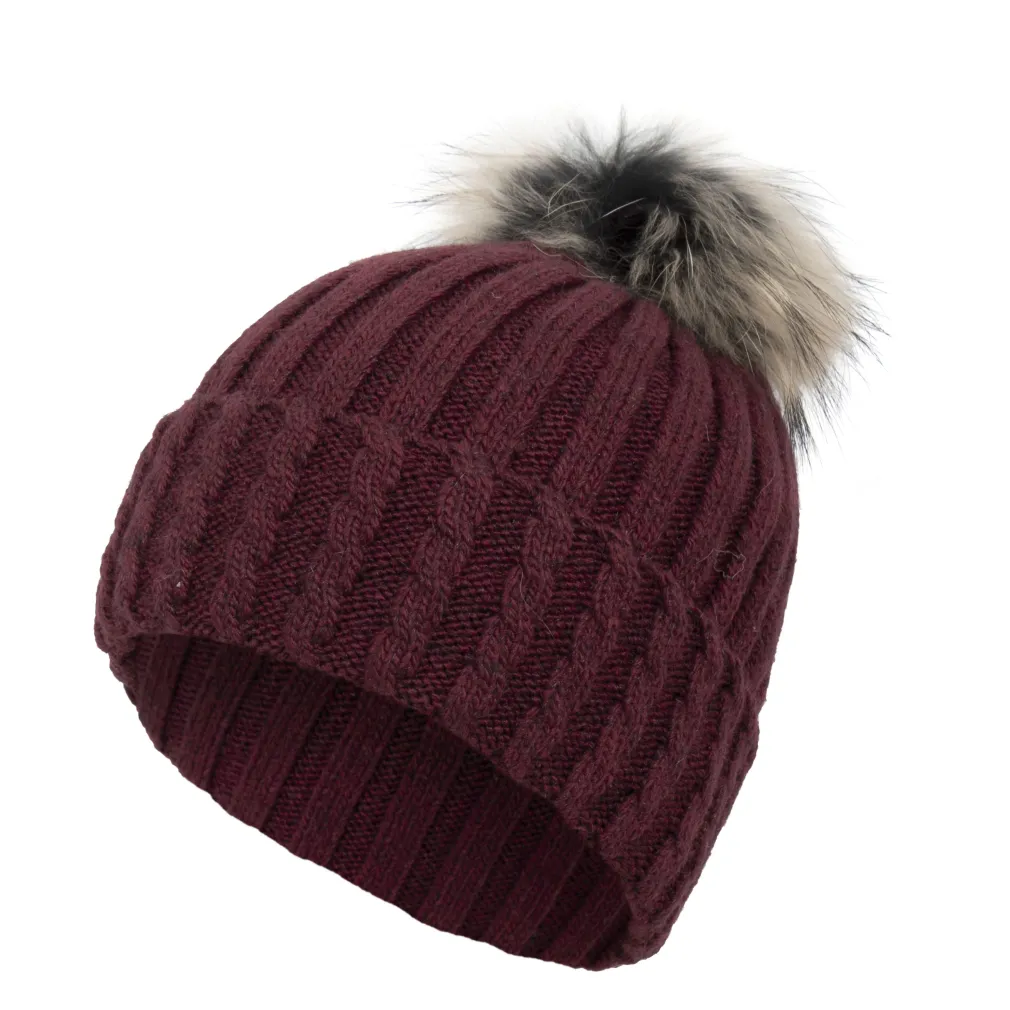 DAMSKA CZAPKA ZIMOWA Z DZIANINY Z POMPONEM Z FUTRA JENOTA