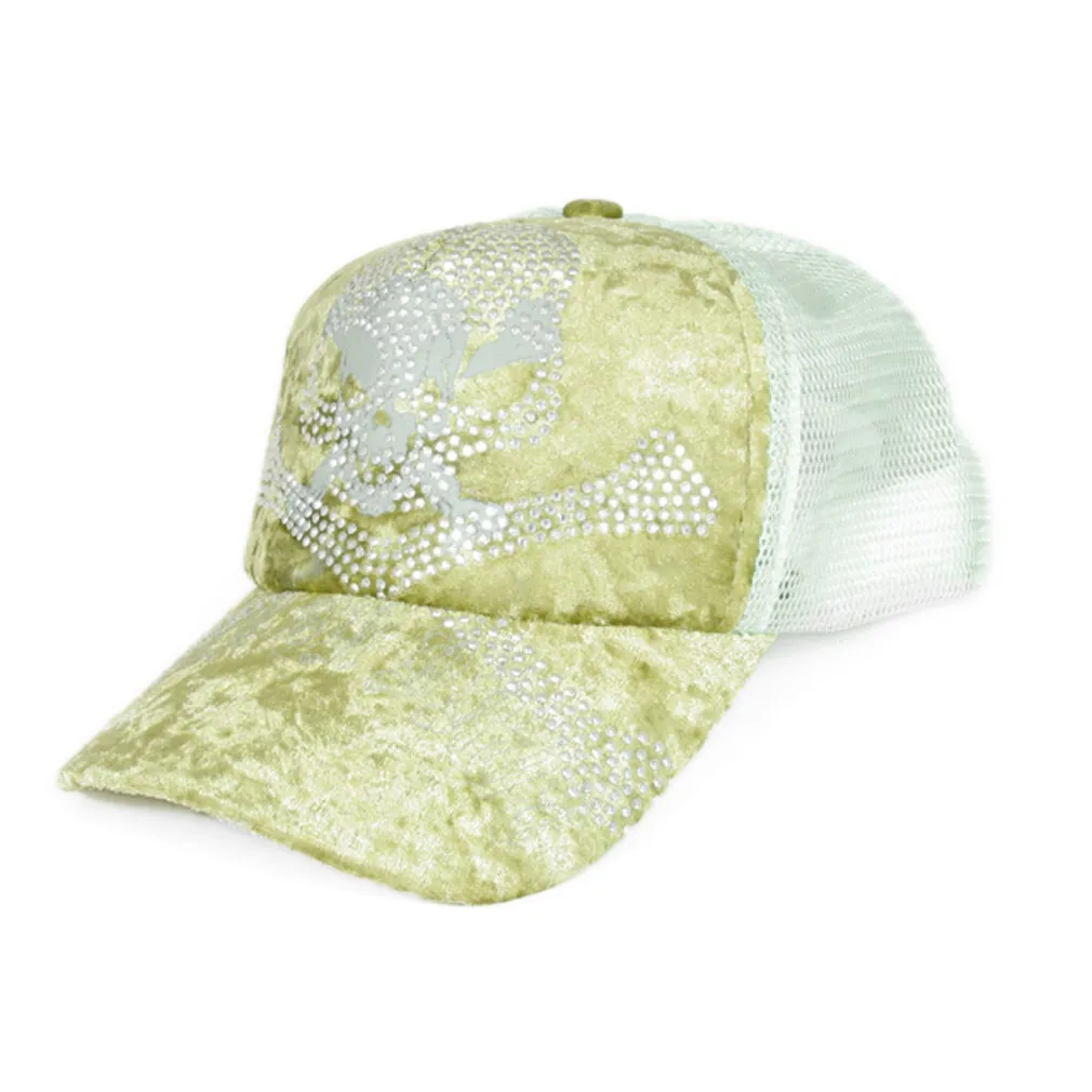 Daszek usztywniany, a w przedniej części ozdobna czaszka z cyrkoniami.