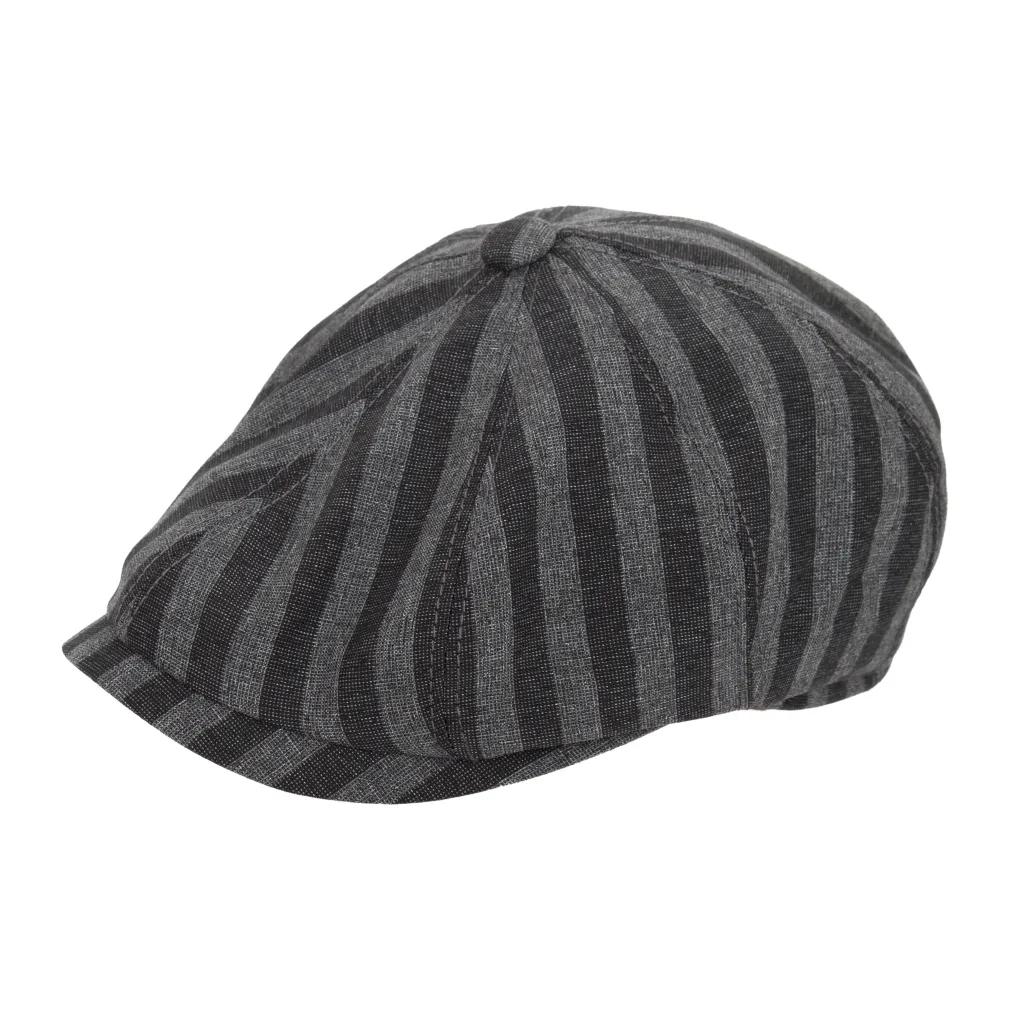 Kaszkiet męski model K-201B w kolorze szarym z subtelnymi paskami to klasyczny wybór dla każdego mężczyzny ceniącego sobie elegancję. Wzór w paski nadaje czapce unikalnego wyglądu, który wyróżnia ją z tłumu. Inspirowany tradycyjnymi kaszkietami typu Shelby, model ten nawiązuje do historii kultowego gangu Peaky Blinders z Birmingham.