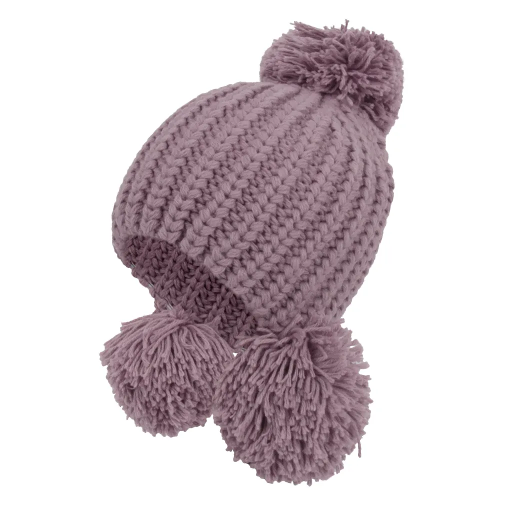 W229H Purple Warm Knitted Winter Hat With Decorative Pom-Poms