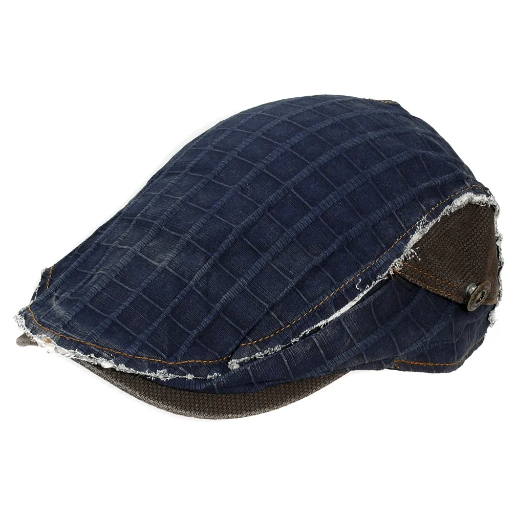 Odkryj elegancki kaszkiet męski bawełniany model K-64C w kolorze granatowym z wzorem w kratkę i unikalnymi brązowymi wstawkami z guzikami. Wykonany z miękkiej bawełny, dostępny w rozmiarze 56-58 cm, z daszkiem o długości 6 cm, stanowi idealne połączenie stylu i wygody dla modnych mężczyzn.