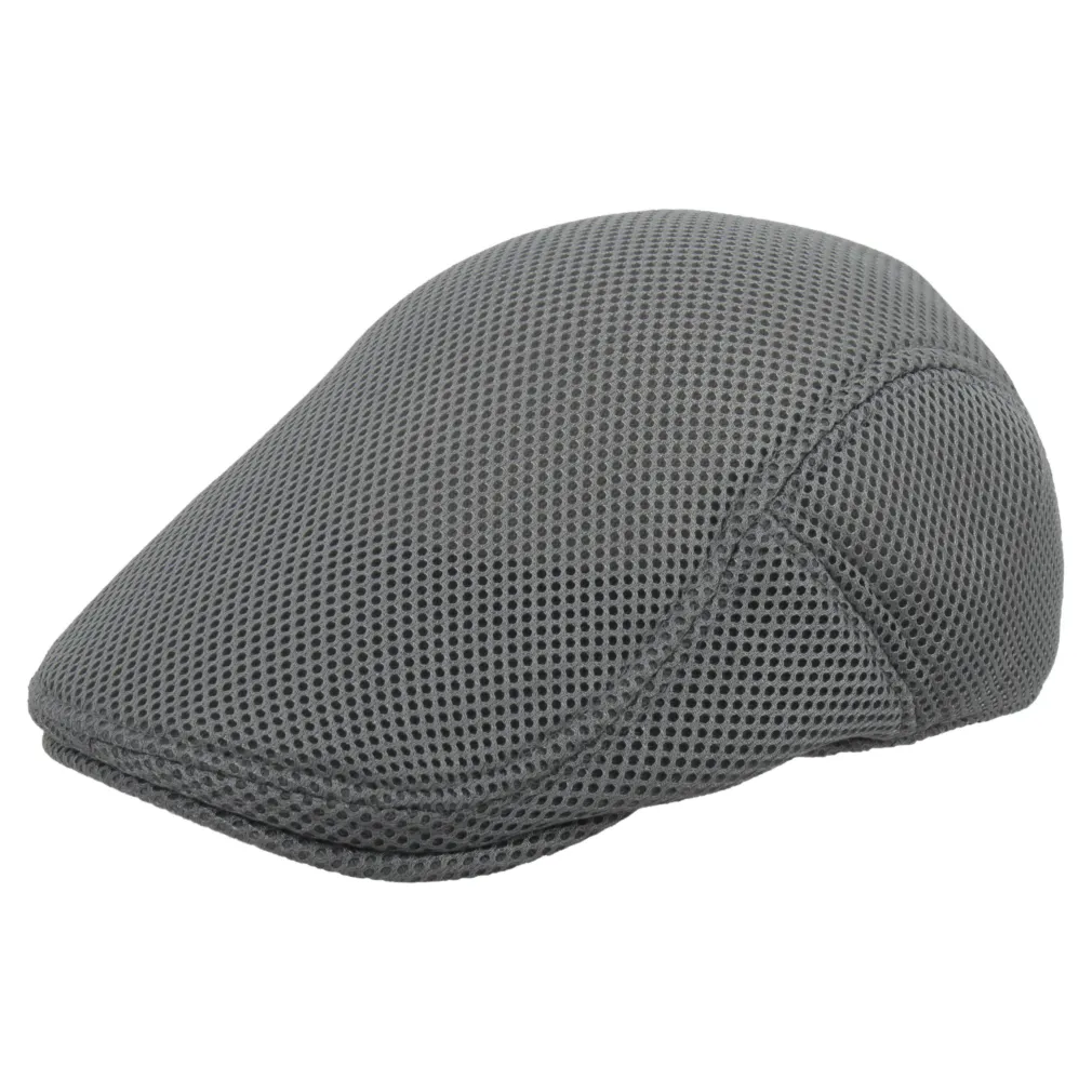 K172B Szary siateczkowy kaszkiet męski to stylowy i funkcjonalny dodatek do męskiej garderoby, idealny na ciepłe dni. Wykonany w 100% z poliestru, posiada regulowany obwód (57-61 cm) i daszek o długości 5,5 cm, zapewniając doskonałą wentylację i ochronę przed słońcem.