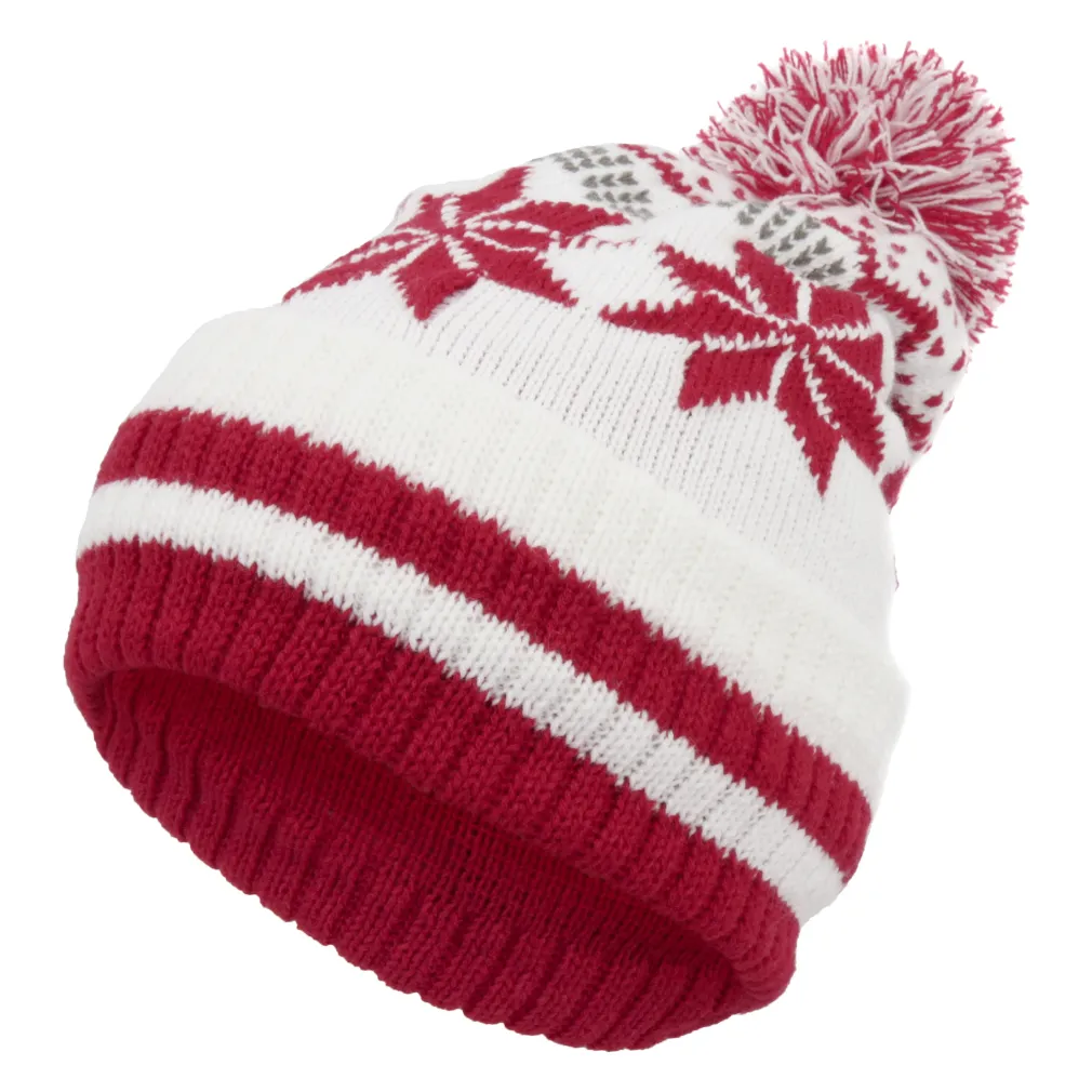 Ozdobiony biało-czerwonym pomponem, ten detalek nie tylko dodaje uroku, ale również działa jako praktyczna bariera przed wiatrem, pomagając zachować ciepło i komfort w okolicach głowy i uszu.