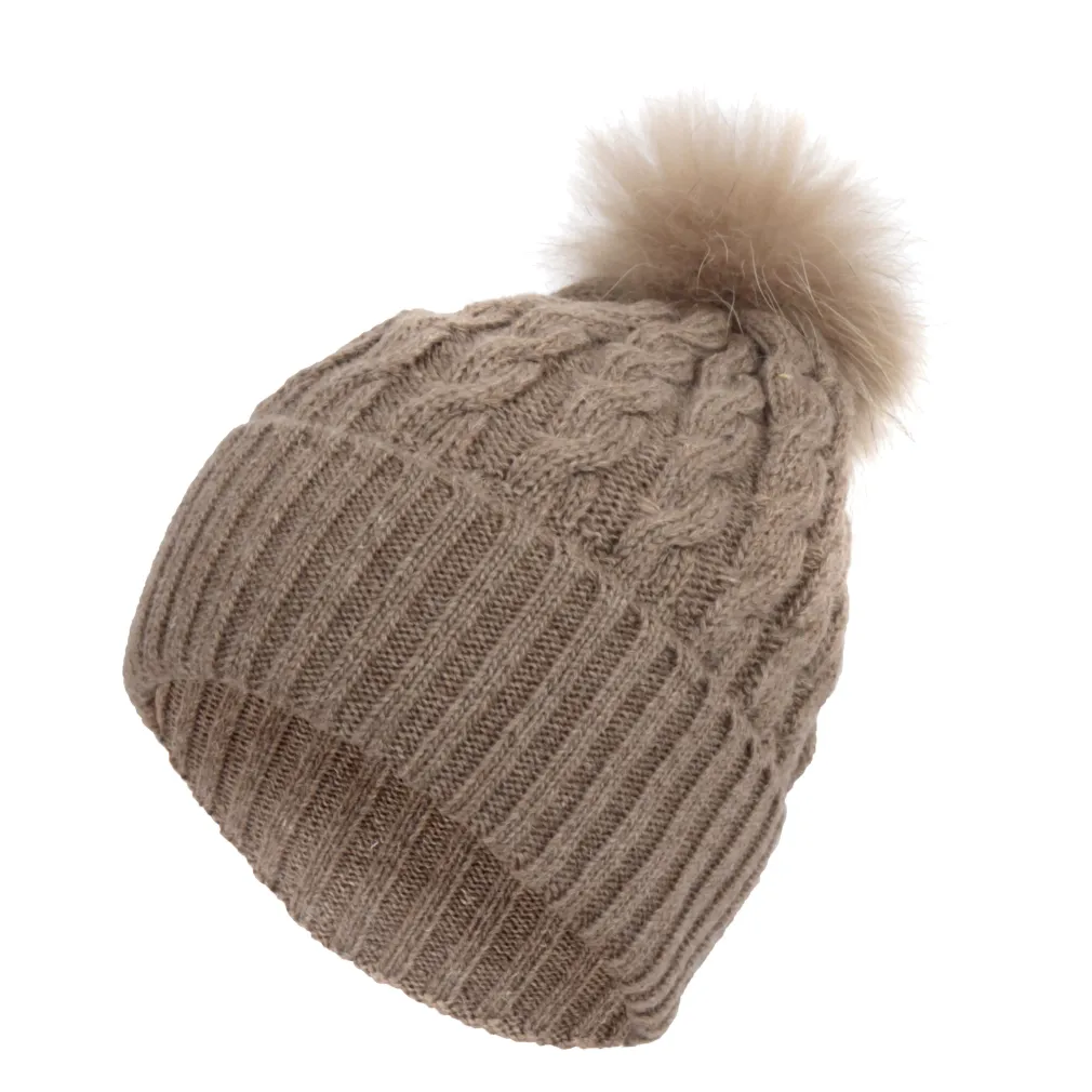 Damska zimowa czapka z dzianiny Model: W-251B to doskonały wybór dla tych, którzy cenią sobie zarówno styl, jak i ciepło w chłodne dni. Ta czapka typu beanie ma elegancki brązowy kolor i futrzany pompon z futra jenota, który nadaje jej wyjątkowy wygląd.