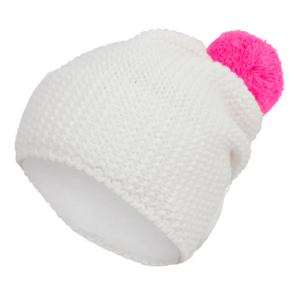 Dzianinowa zimowa czapka z polarem, model W-265E Biała z różowym pomponem, to praktyczny i elegancki dodatek do Twojej zimowej garderoby.