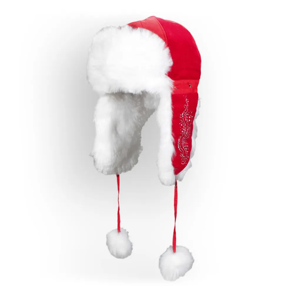 Na końcach zauszników znajdują się sznureczki zakończone pomponami, co dodaje uroku tej czapce. Można ją również związać pod szyją, co pomaga w utrzymaniu ciepła wokół szyi i uszu.