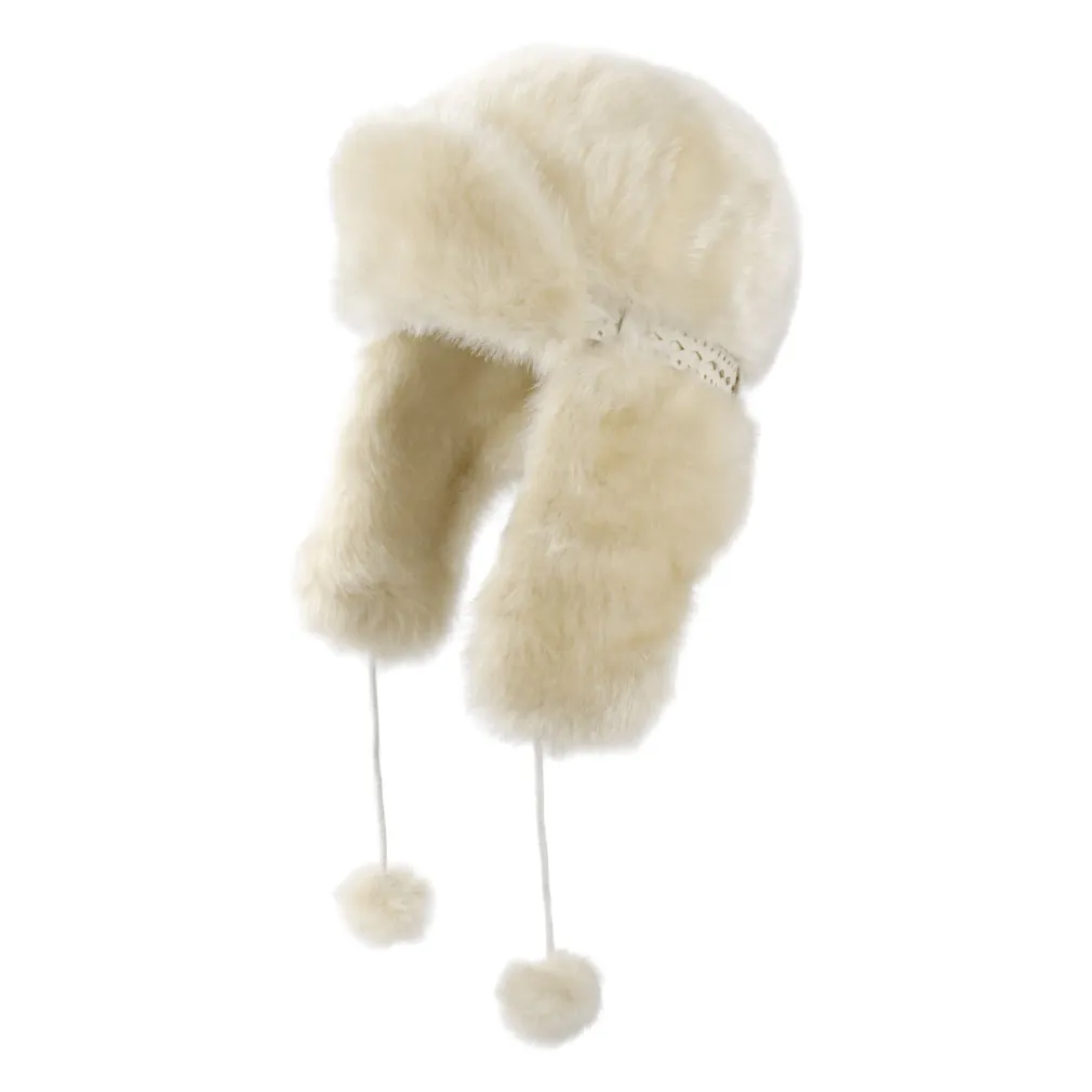 Nauszniki czapki, zarówno z zewnątrz, jak i wewnątrz, są obszyte miękkim futerkiem, co zapewnia dodatkowy komfort noszenia i chroni uszy przed zimnem. Na końcach tych nauszników znajdują się ozdobne pompony, które dodają czapce uroku i stylu.