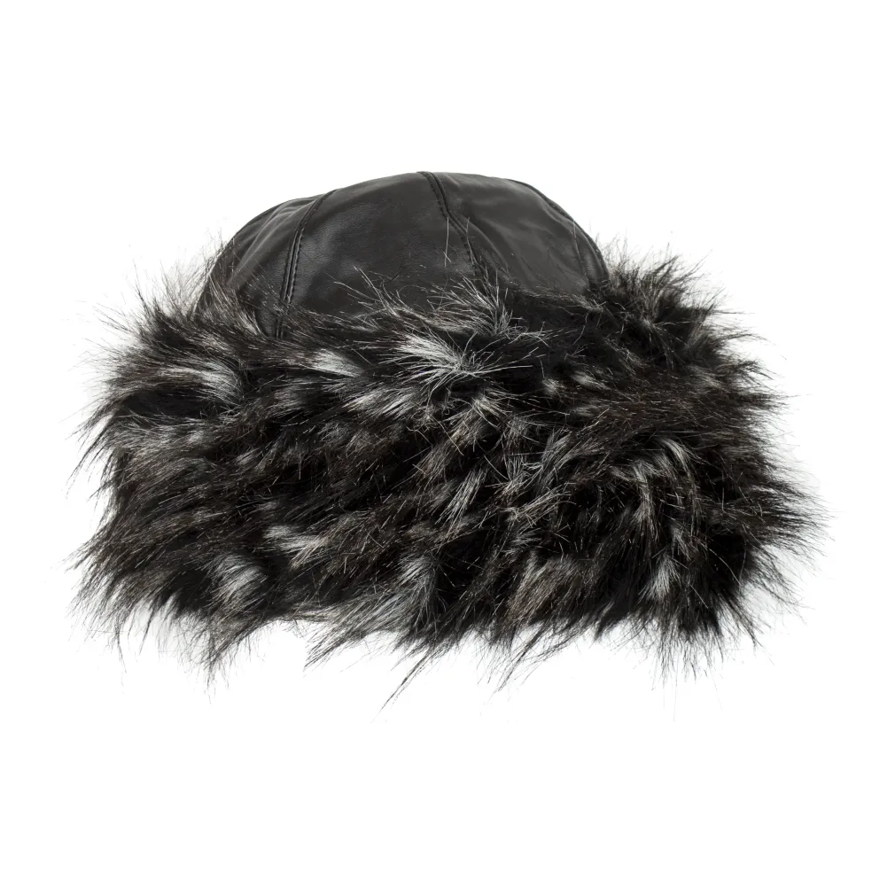 Ciepły, czarny toczek damski z ekoskóry z biało-czarnym futerkiem. Stylowy, wygodny i elegancki – idealny dodatek zimowy marki Polar Fashion.