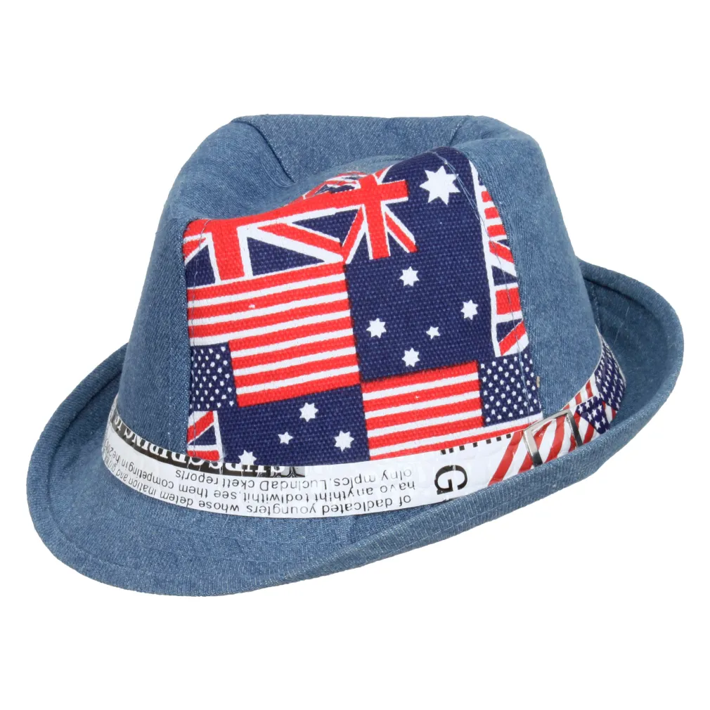 Poznaj wyjątkowy kapelusz R188B, który sprawi, że Twoje dziecko będzie wyglądać modnie i stylowo. Ten klasyczny kapelusz Trilby z unikalnym wzorem flag i dekoracyjnym paskiem to idealny dodatek do każdej dziecięcej garderoby.