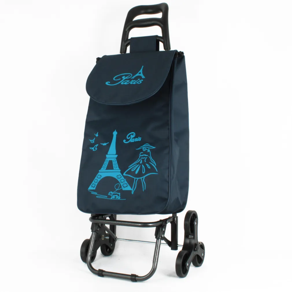 Wózek WZ379A to trzykołowy model idealny do jazdy po schodach. Wyposażony w torbę zakupową na kółkach, ułatwia transport zakupów i innych przedmiotów.