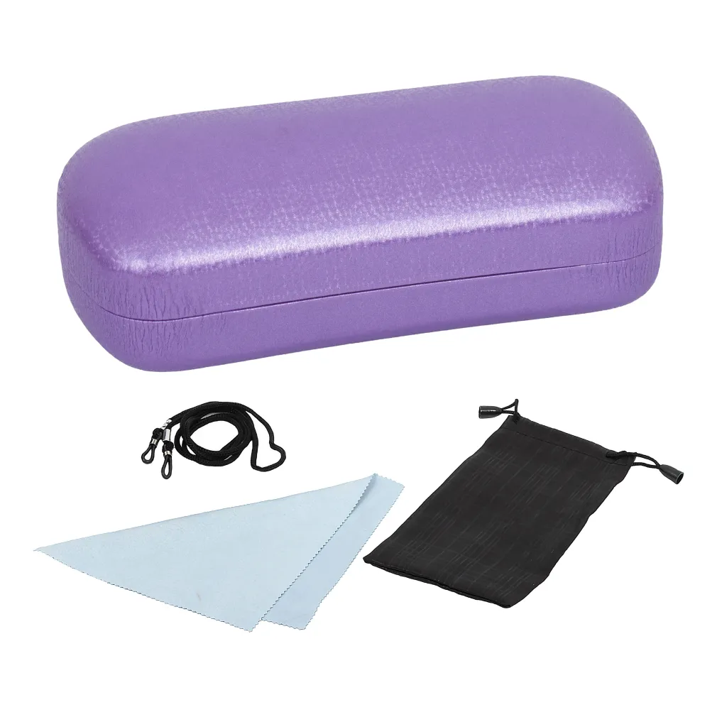 Podsumowując, to duże damskie fioletowe metalowe etui na okulary z miękkim środkiem to doskonały wybór dla kobiet, które chcą chronić swoje okulary przed zarysowaniem i uszkodzeniem, przy zachowaniu stylowego wyglądu.