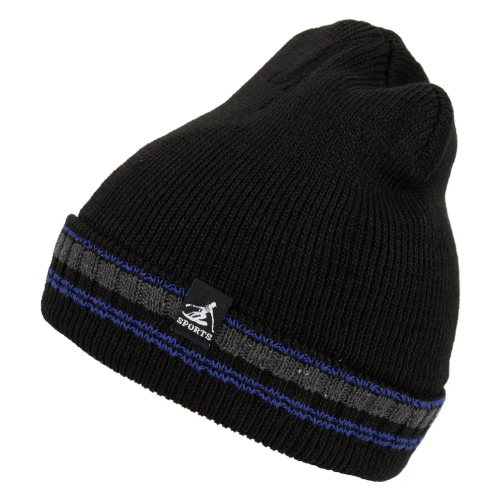 Czapka zimowa męska W457C w kolorze czarno-niebieskim. Styl beanie z dodatkiem futerka zapewnia ciepło i wygodę w chłodne dni.