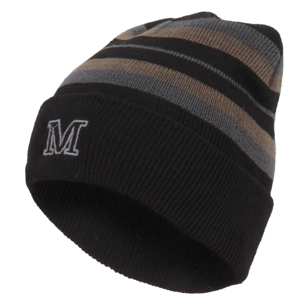 W305C Czarno Beżowa Haker fisherman beanie na zimę czapka w pasy z dzianiny