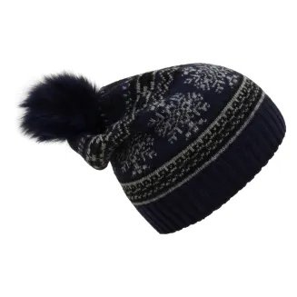 W321D Granatowa Polar Fashion ciepła czapka zimowa beanie oryginalny design motyw śnieżki pompon