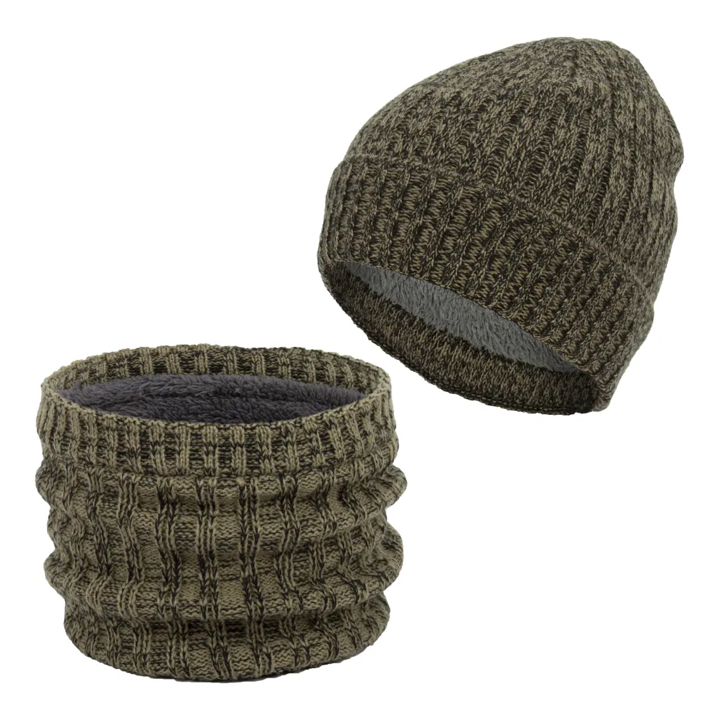 • W393E Beżowy melanż Ciepły zimowy komplet czapka i komin z futerkiem polarowym Polar Fashion®