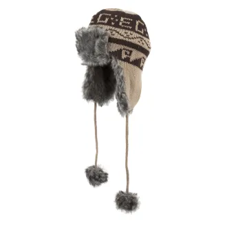 To jest zimowa czapka uszatka wykonana z ciepłej dzianiny. Wnętrze czapki jest ocieplone miękkim polarem, co sprawia, że zapewnia ona ciepło oraz komfort podczas noszenia, a także dobrze przylega do głowy. Czapka posiada wywinięcie nad czołem oraz nauszniki, które są podszyte akrylowym futerkiem. Czapka jest wiązana pod szyją za pomocą sznureczków zakończonych pomponami, co umożliwia jej regulację i dopasowanie do rozmiaru głowy.