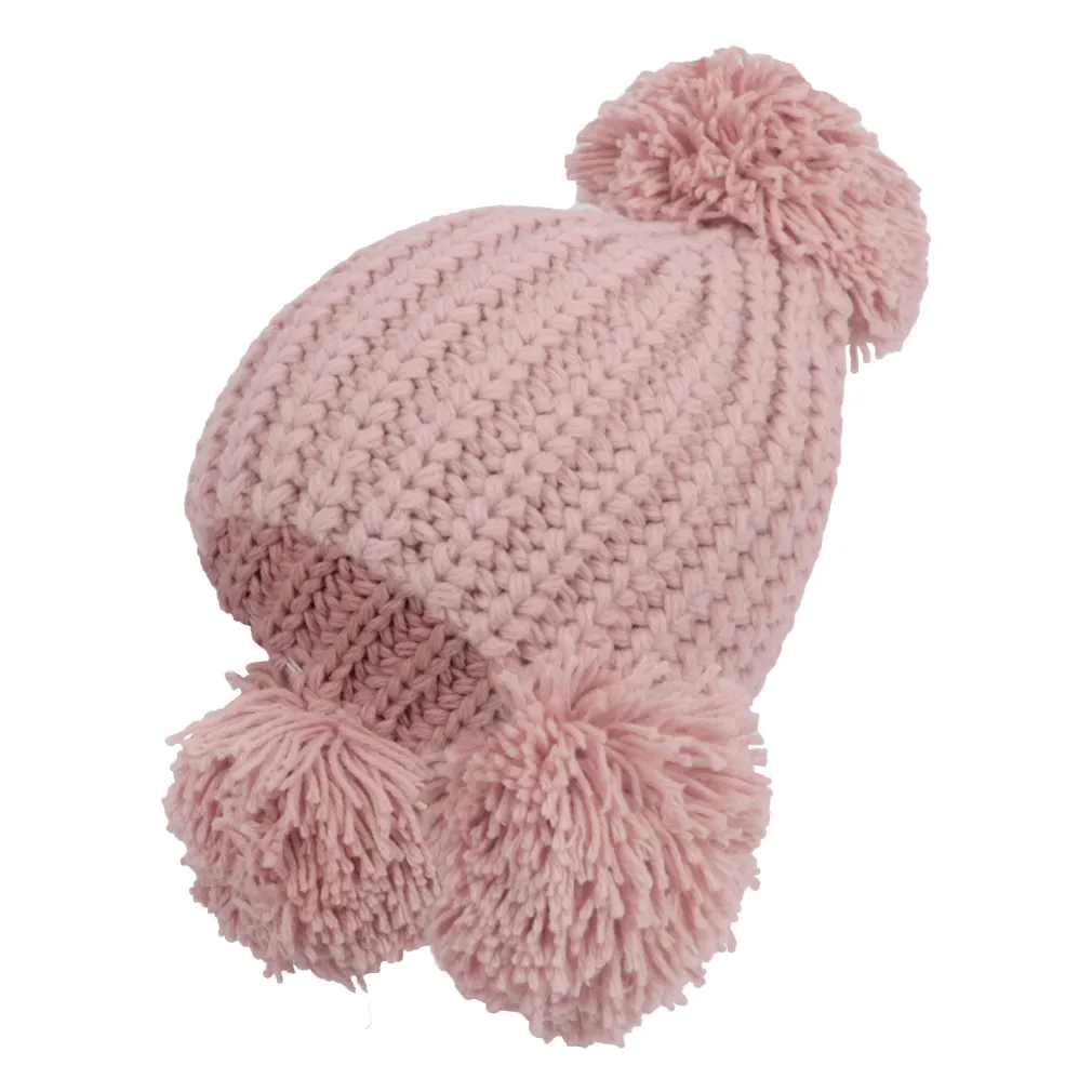 W229D Róż pudrowy Ciepła dzianinowa czapka zimowa z ozdobnymi pomponami