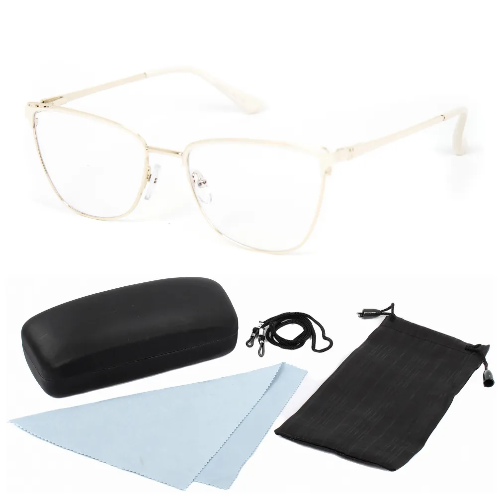 Okulary, etui oraz fibra do czyszczenia szkieł.