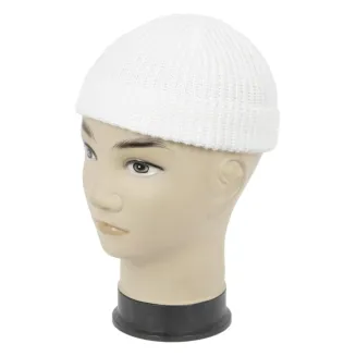 W465H Biała męska czapka dokerka bez daszka wywijana