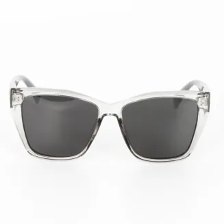 Ten model z transparentną ramką to kwintesencja nowoczesnego minimalizmu i elegancji. Transparentność dodaje lekkości i uniwersalności, dzięki czemu okulary świetnie komponują się z różnymi stylami i kolorami ubrań. Popielate zauszniki w subtelny sposób podkreślają nowoczesny design, a mocno przyciemnione szkła zapewniają skuteczną ochronę przed słońcem, jednocześnie dodając odrobinę tajemniczości i klasy.