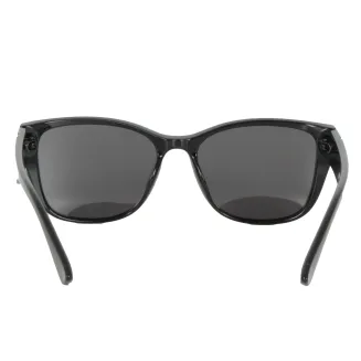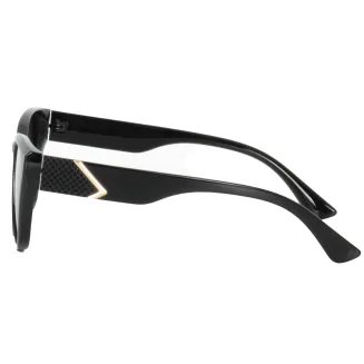 Ramka oraz zauszniki wykonane z trwałego poliwęglanu w klasycznej czarnej barwie, już na pierwszy rzut oka przyciągają uwagę. Błyszczące wykończenie dodaje elegancji i sprawia, że okulary prezentują się niezwykle stylowo. Delikatna ozdoba na bokach zauszników podkreśla ich unikalny charakter, czyniąc je idealnym dodatkiem do każdego stroju.