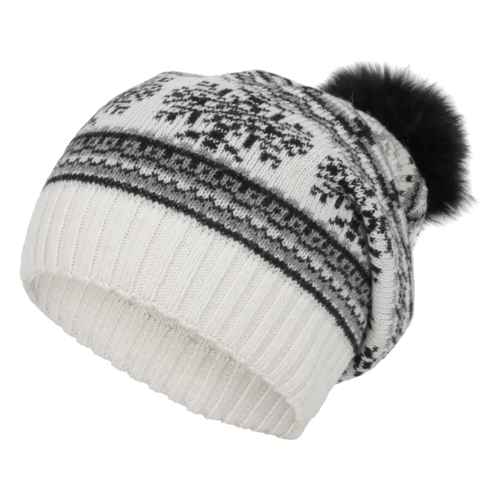 Ta urocza czapka beanie została wykonana z trwałego akrylu, który zapewnia optymalną izolację termiczną, jednocześnie utrzymując komfort noszenia. Czapka prezentuje wzór śnieżki w stylu skandynawskim, nadając jej charakterystycznego i atrakcyjnego wyglądu. Idealnie pasuje do różnych stylizacji, dodając im nutę uroku.