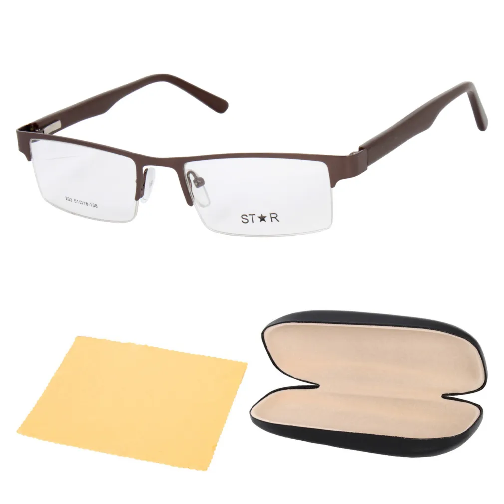 Okulary, etui oraz fibra do czyszczenia szkieł.