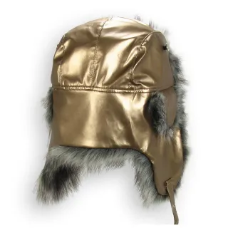 W14C Złota Nieprzemakalna ciepła czapka zimowa uszatka wykonana z ekologicznej błyszczącej skóry