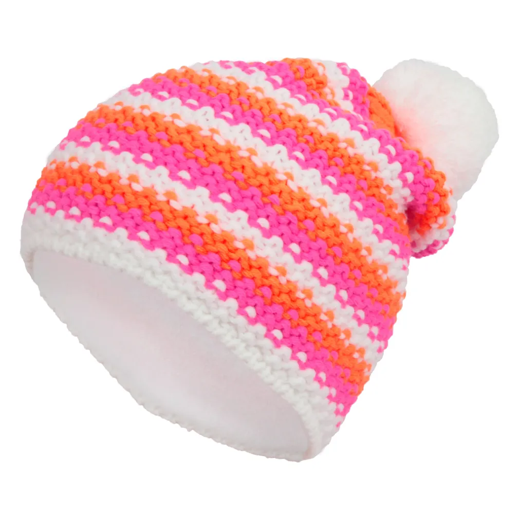 Czapka zimowa w kolorowe paski, model W-262B Pomarańczowo-różowa, to wyjątkowy i stylowy dodatek do Twojej zimowej garderoby.